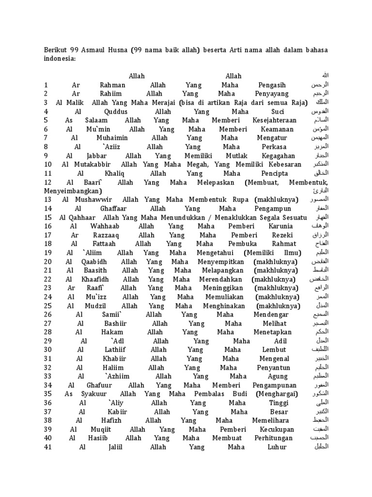 Asmaul Husna Dan Artinya Lengkap 99 Bahasa Indonesia - Daftar Nama Allah 99 Asmaul Husna Teks Arab Latin Dan Artinya Sejuta Warna - 99 asmaul husna beserta artinya dan manfaat menghafalkannya.